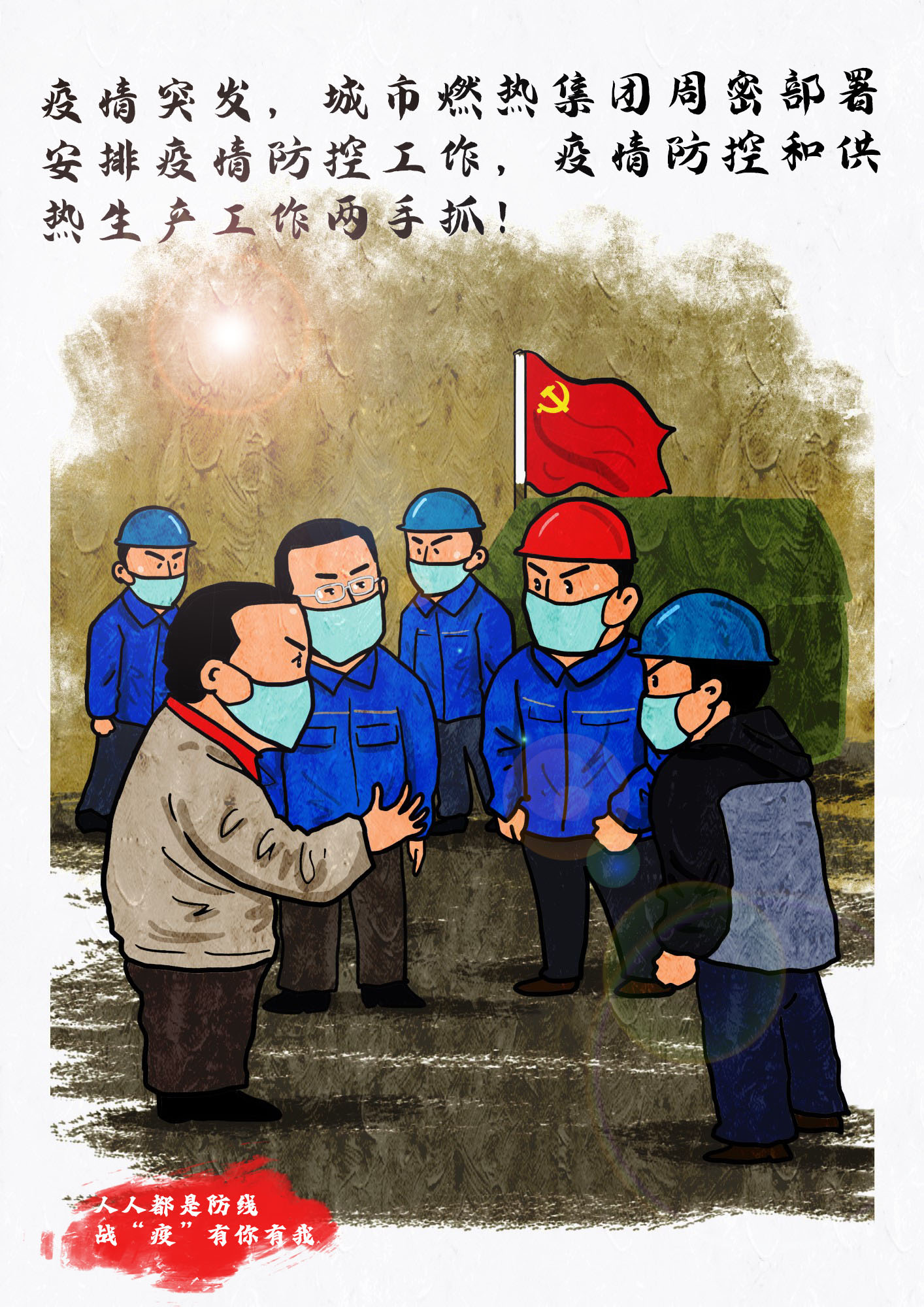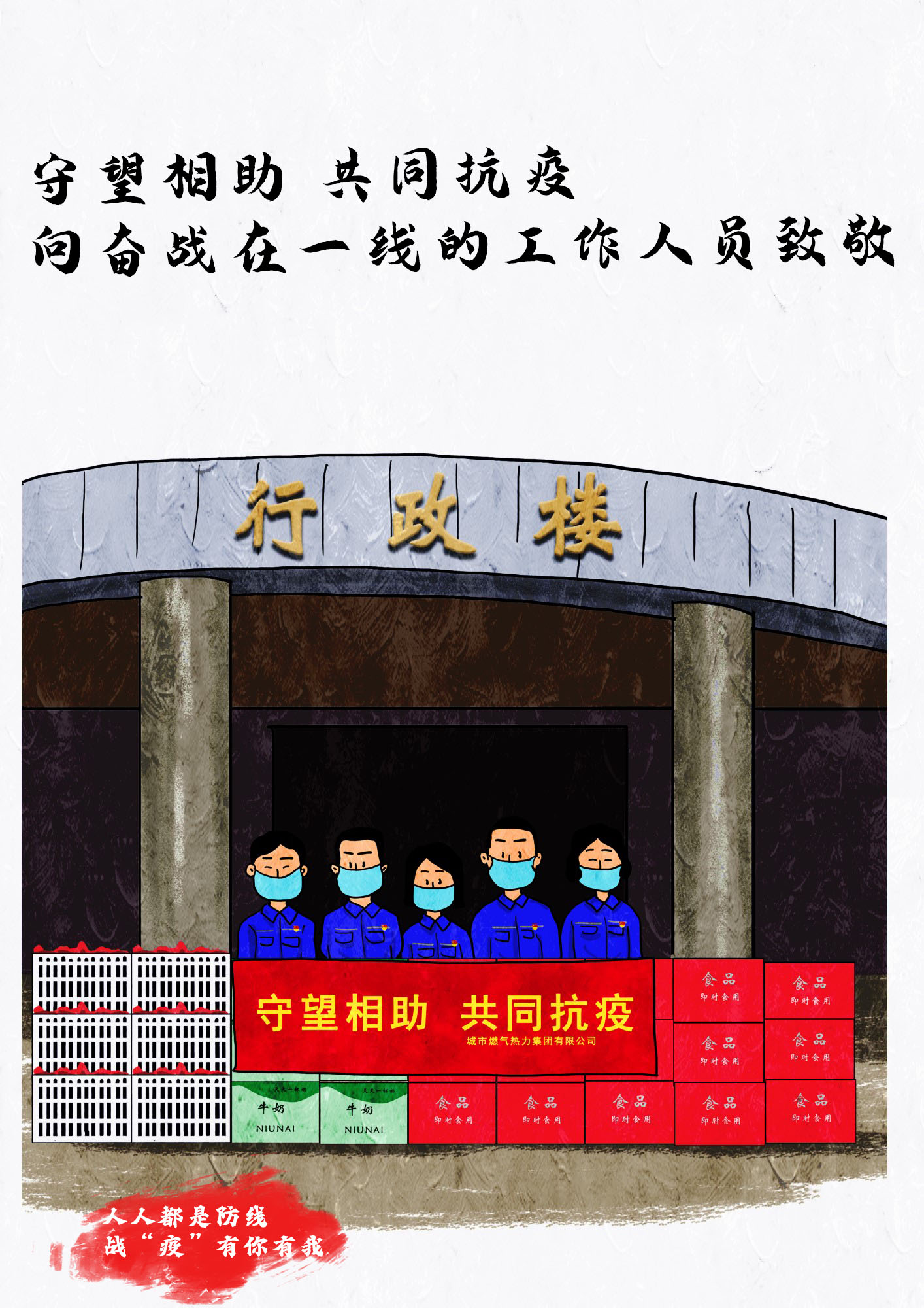 今天,城市燃熱集團(tuán)職工高帆手繪了一組組集團(tuán)抗疫保供的漫畫鏡頭,記錄溫暖感人的瞬間。
