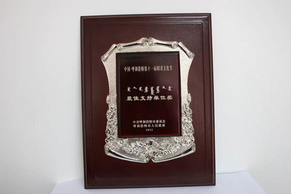 中國·呼和浩特第十一屆昭君文化節(jié)最佳支持單位獎(jiǎng)