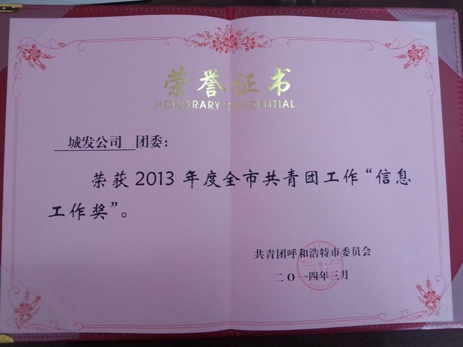 城發(fā)公司團(tuán)委獲得2013年度全市共青團(tuán)工作“信息工作獎”