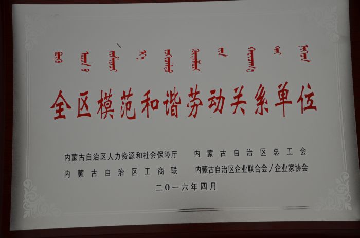 公司榮獲2016年全區(qū)模范和諧勞動關(guān)系單位