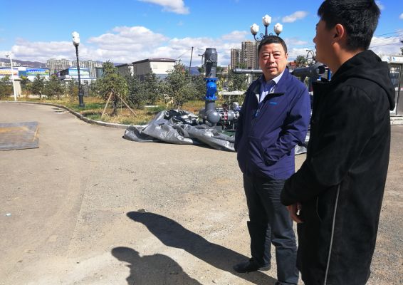 在財政廳東站景泰小區(qū)供熱管網(wǎng)項目收尾施工現(xiàn)場,副經(jīng)理任強向負責該項目的施工負責人詢問了施工的具體情況,對項目工作進展情況給予充分肯定。