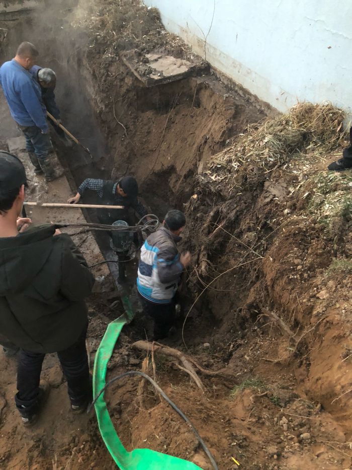 11月11日下午,中繼泵房專項高壓電閃落,1#、2#、3#循環(huán)泵因自動保護驟停。出現(xiàn)異常后,調(diào)度立即通知京能電廠降頻,檢修車間立即組織人員進行巡線,經(jīng)過15個小時不間斷排查,12日上午,發(fā)現(xiàn)如意舊網(wǎng)主線和1#站支線漏水嚴(yán)重。分公司檢修車間、運營二所和保駕護航單位迅速制定搶修方案組織搶修,經(jīng)理丁成斌、副經(jīng)理鄭紅飛親自到現(xiàn)場指導(dǎo)搶修工作。為準(zhǔn)確找到失水點,搶修人員穿著隔熱服進入管溝內(nèi)查找漏點。由于漏水點管線錯綜復(fù)雜,施工難度非常大。接近管道時,發(fā)現(xiàn)漏點位置靠近井壁且管道腐蝕嚴(yán)重,壁厚較薄,采取整理外層補焊的方式進行修補。