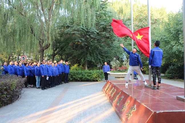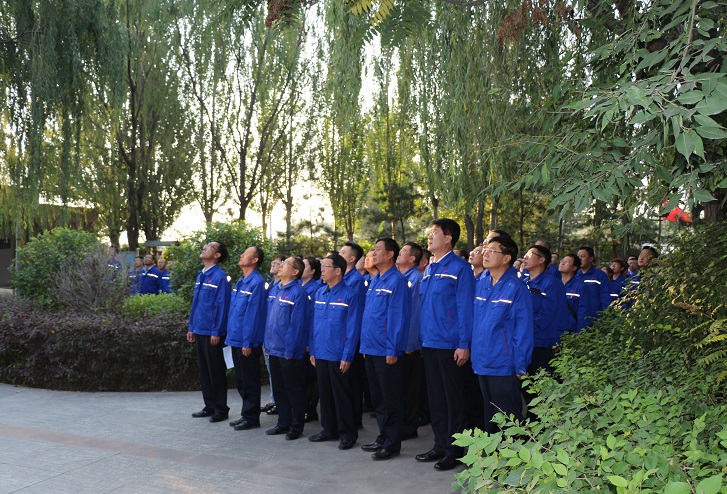 9月30日上午,城發(fā)公司組織公司領(lǐng)導班子全體成員、分(子)公司黨政負責人、機關(guān)各部室負責人及30多名一線職工在辛家營供熱分公司開展“升國旗、唱國歌”活動。