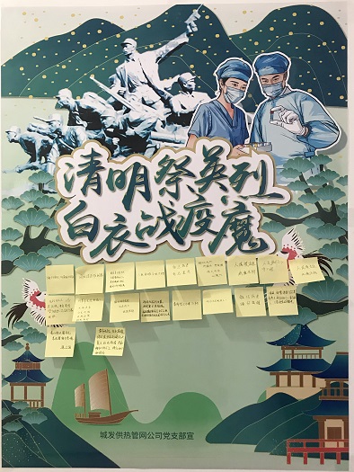 黨支部還制作了祭奠海報,張貼在樓道醒目位置,黨員群眾可以隨時進行祭掃活動,并留下祭掃寄語,祭奠在中國革命、建設(shè)、改革歷史進程中英勇犧牲烈士的同時,致敬在抗擊疫情一線犧牲的醫(yī)護人員、公安干警等"逆行英雄"。