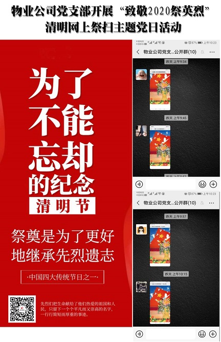 4月2日,城發(fā)物業(yè)公司黨支部組織開展“致敬2020祭英烈”清明網(wǎng)上祭掃主題黨日活動。