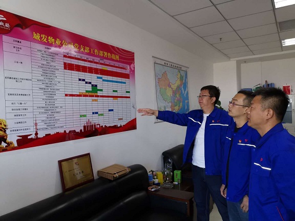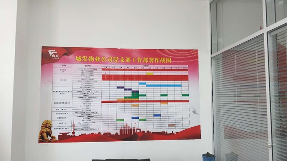 6月1日,城發(fā)物業(yè)公司黨支部辦公室、黨群工作處的兩張黨建工作部署作戰(zhàn)圖展板,吸引了全體干部職工的注意力。這兩張展板不僅詳細(xì)地安排部署了今年黨建的各項(xiàng)重點(diǎn)工作和日常工作,同時按照時間節(jié)點(diǎn),細(xì)化操作舉措,掛圖作戰(zhàn),序時推進(jìn),精準(zhǔn)發(fā)力,穩(wěn)扎穩(wěn)打,逐步推進(jìn)基層黨組織建設(shè)工作水平。