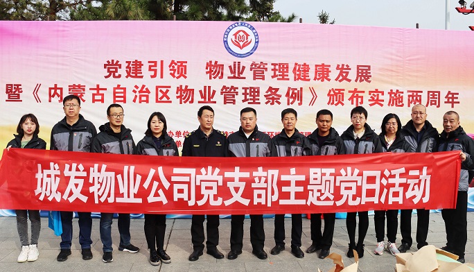 10月10日上午,城發(fā)物業(yè)公司黨支部在開展“加強黨建引領(lǐng) 促進物業(yè)發(fā)展”主題黨日活動中,組織黨員干部11人赴大召廣場參加市住宅小區(qū)環(huán)境秩序管理局舉辦的“黨建引領(lǐng)物業(yè)管理健康發(fā)展”暨《內(nèi)蒙古自治區(qū)物業(yè)管理條例》頒布實施兩周年主題宣傳月活動,向廣大市民群眾普及物業(yè)法律知識,積極宣傳公司服務發(fā)展理念。