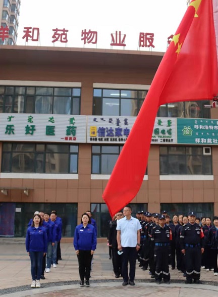 9月27日上午,城發(fā)物業(yè)公司黨支部聯(lián)合呼市住房保障和房屋管理局經(jīng)營(yíng)管理處祥和苑公租房管理站在祥和苑公租房小區(qū)舉行“我和我的祖國(guó)——升國(guó)旗、唱國(guó)歌”獻(xiàn)禮中華人民共和國(guó)成立72周年活動(dòng)。黨員、干部、職工共40余人參加此次活動(dòng)。
