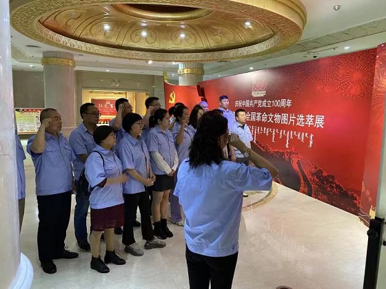 在博物院二樓展廳內(nèi),黨支部書記郭依群同志率先帶領(lǐng)大家重溫入黨誓詞,銘記初心使命,并齊聲高唱《沒有共產(chǎn)黨就沒有新中國》紅歌,表達愛國愛黨的熱烈情懷。隨后在講解員的帶領(lǐng)下大家認真聆聽學(xué)習(xí)了革命先輩的光輝事跡,一幅幅生動的照片、一件件厚重的實物、一個個感人的故事,無不再現(xiàn)了中國共產(chǎn)黨人百年奮斗的不屈精神和輝煌成就。